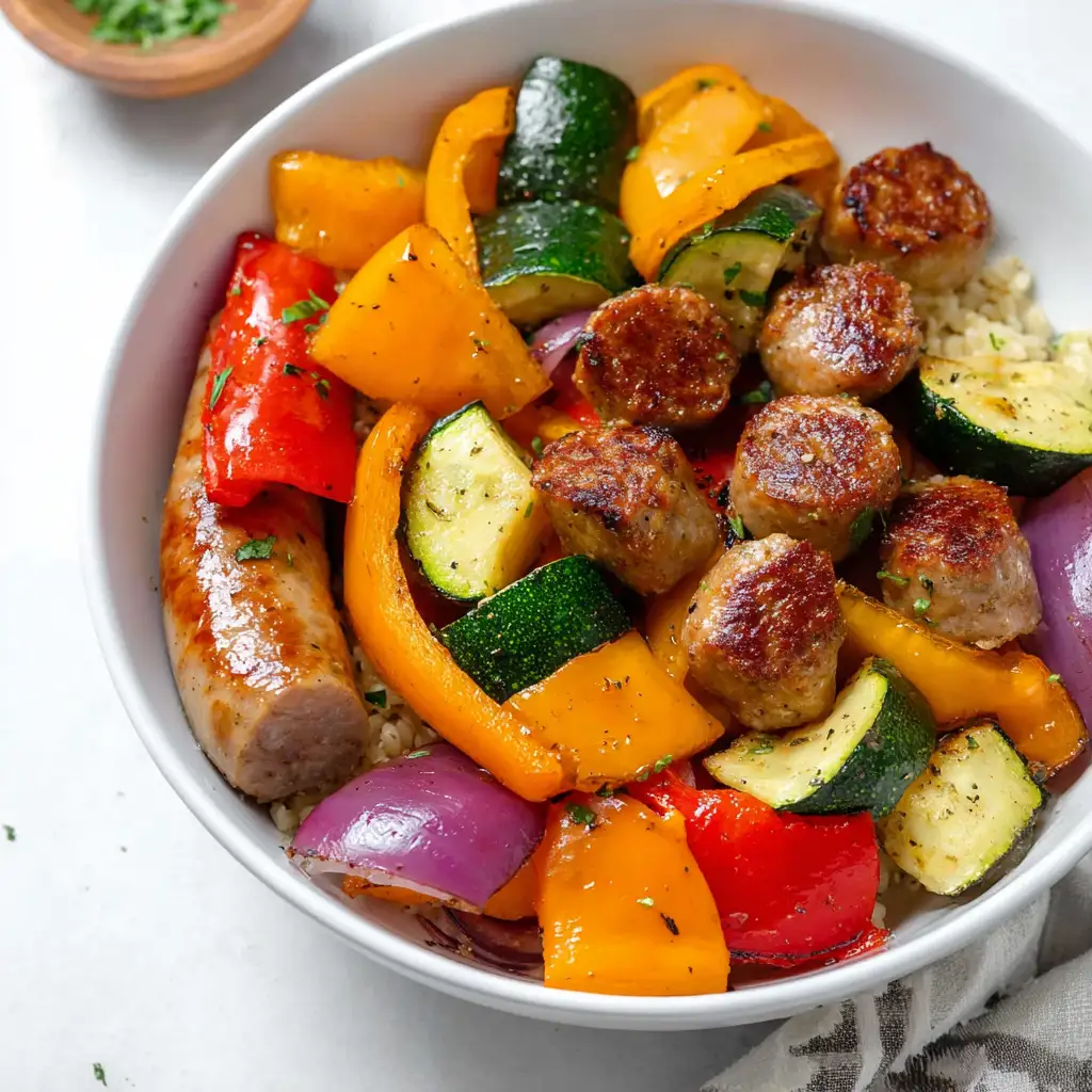 10 Minute Air Fryer Chicken Sausage and Veggies packs protein from quality chicken sausage with vitamins from bell peppers, zucchini, and red onion. This one-pan meal cooks in 10 minutes, making healthy eating accessible even on the busiest schedules.