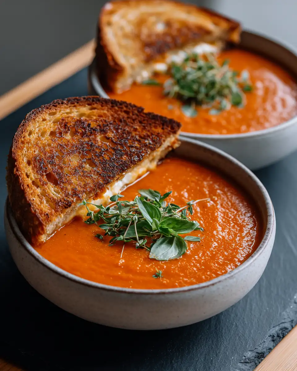 This is comfort food with brightness. Unlike your average tomato soup, this version roasts fresh tomatoes first, pulling out their natural sweetness and concentrating their flavor. Blended with garlic, olive oil, and fresh basil, the result is a smooth, velvety soup that balances acidity and richness beautifully. It’s cozy without being heavy—ideal for fall days when you still want a touch of summer’s freshness. Pair it with a grilled cheese or a swirl of cream for an easy lunch or light dinner that feels both nostalgic and elevated.