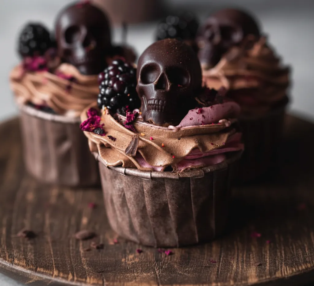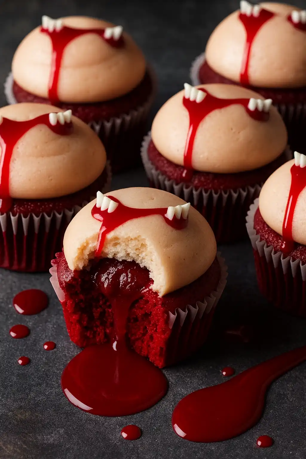 Want a cupcake that gives drama with every bite? These vampire cupcakes are it. They may look innocent on the outside—usually topped with pristine white buttercream—but sink your teeth into one and you’ll find a “bloody” raspberry or strawberry filling oozing out. The visual effect is chilling, but the flavor? Sweet, tart, and totally delicious.