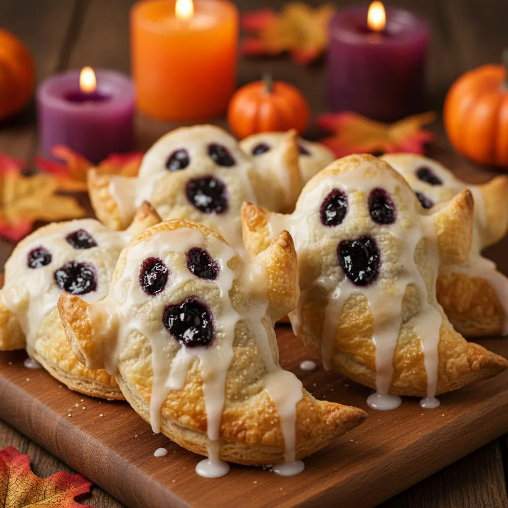 The best part? No animal products here. The dough uses plant-based butter, and the filling is naturally sweetened with fruit. You can cut out spooky shapes using cookie cutters or make simple ovals with “ghost” eyes poked in before baking.