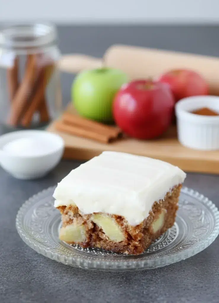 Now, no matter how many pies or tarts we plan, this simple cake still earns a spot. It’s the dessert you serve when everyone’s too full for more, but somehow finds room anyway. Warm spices, chunks of tender apples, and that creamy layer of frosting it’s the kind of sweet ending that feels like a hug after a long day.