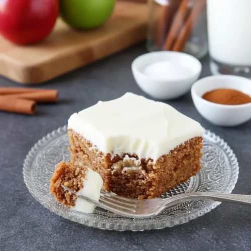 There’s something about the smell of cinnamon and apples baking that feels like home especially on Thanksgiving. When the turkey’s resting, the pies are cooling, and there’s still a bit of oven warmth in the air, this apple cake has a way of sliding into the spotlight. It’s a humble sheet cake, yet every bite is packed with juicy apple chunks, warm spice, and a crown of creamy, tangy frosting that gets better by the forkful.