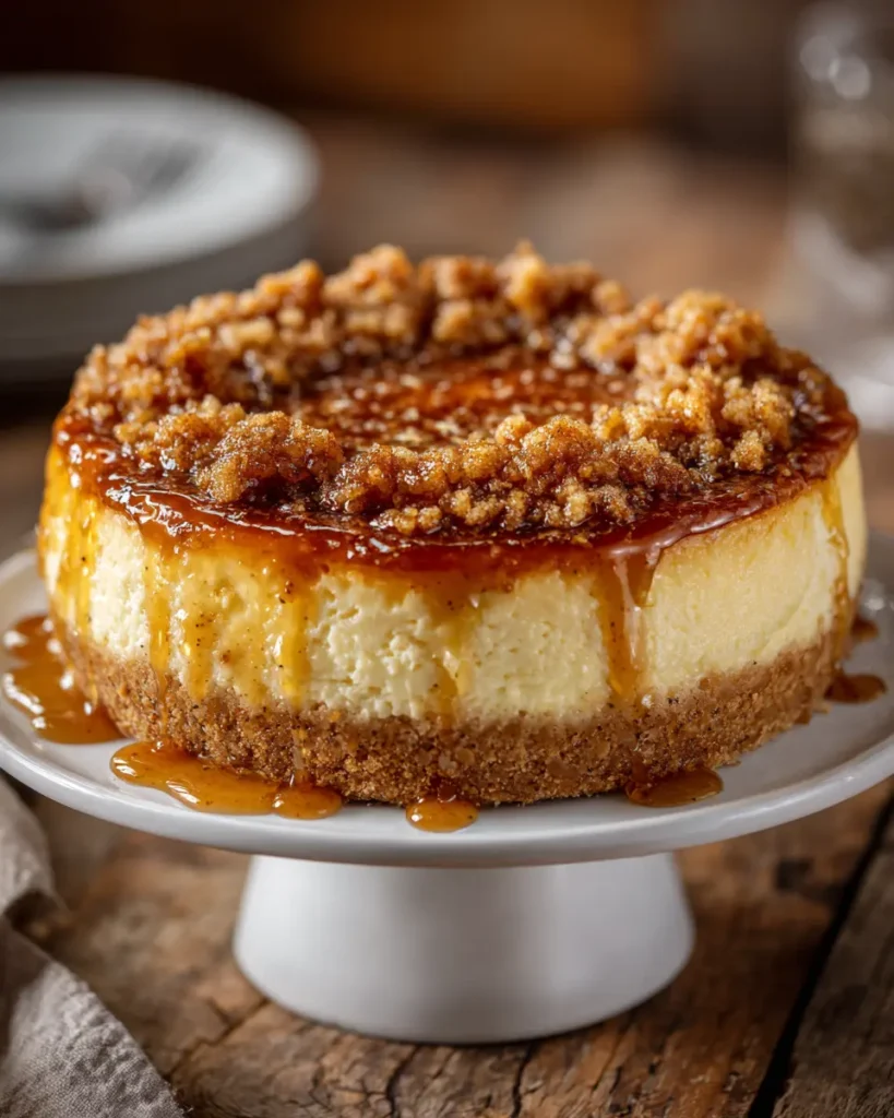 This reduction doesn’t just taste like apples—it tastes like fall. That rich, spiced base infuses the entire cheesecake with warmth and brightness, giving it character beyond plain vanilla or even pumpkin.