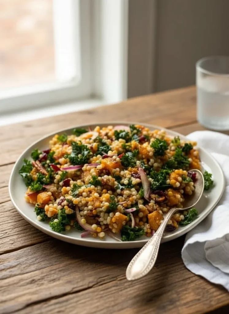 This salad is all about balance. You’ve got sweet (butternut squash and cranberries), savory (couscous and kale), tangy (apple cider vinegar and citrus juice), and nutty (pecans and olive oil). The pearl couscous—larger and chewier than regular couscous—acts like a canvas, soaking up the dressing and giving every bite substance.