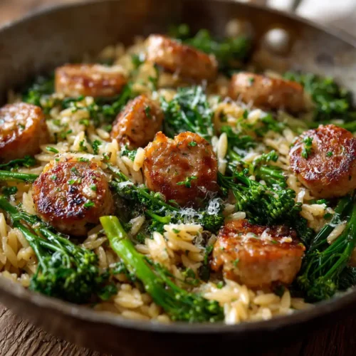 There was a time—not that long ago—when dinner felt like a race against the clock. The twins were cranky, the dishes were piling up, and I still hadn’t figured out what to cook. That’s when this broccolini, chicken sausage, and orzo skillet came into my life. It wasn’t planned. I had some leftover chicken sausage, a lonely bunch of broccolini, and a cup of orzo that wasn’t enough for a soup but too much to toss. I threw it all in a pan—and something magical happened.