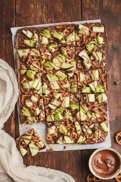 Yes, but it’s best enjoyed within 24 hours. Because of the fresh apple pieces, the bark doesn’t store well for long periods. The apples can release moisture, making the chocolate soften or separate. To prep ahead, you can melt and layer the chocolate and toppings (minus apples), refrigerate it, and then add freshly chopped apples and drizzle caramel just before serving.
