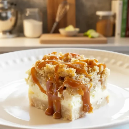 Caramel apple cheesecake bars bring together the very best of fall baking—warm spices, tangy cream cheese, tart apples, and rich caramel—in one irresistible bite. With a buttery crust, smooth cheesecake center, and crunchy streusel topping, these bars offer something for every dessert lover. They’re easy to slice, simple to store, and beautiful enough for any table. Whether you’re baking for a holiday, a family dinner, or a cozy night in, these bars make the moment feel extra special. Try them once, and they just might become your new seasonal favorite.