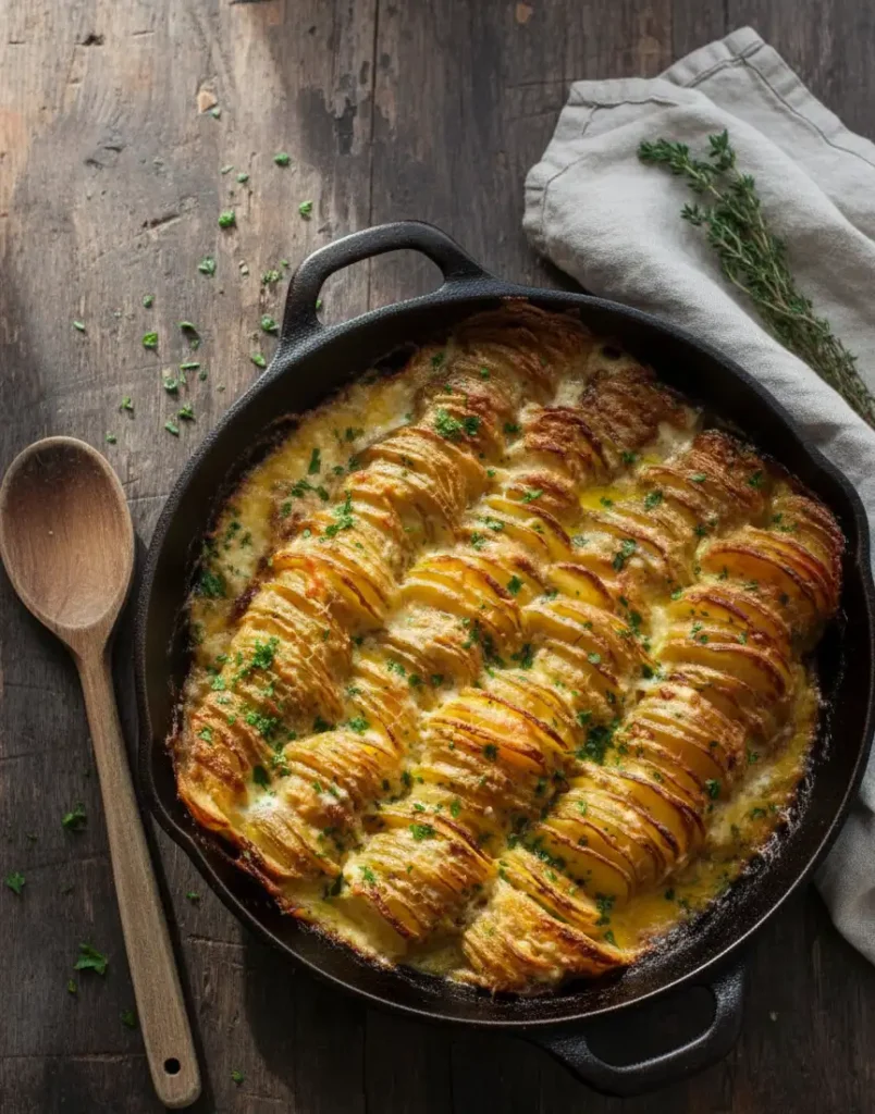 Once the dish is out of the oven, resist the urge to dig in immediately. Let it rest for 10–15 minutes so the sauce can thicken slightly and the layers set. Then, sprinkle with chopped parsley or dill for a touch of freshness and color. Serve it warm as a side—or honestly, as the main event. This dish pairs beautifully with roasts, grilled meats, or even a simple green salad. And the leftovers? They’re almost better the next day, reheated with just a splash of milk to keep things creamy.