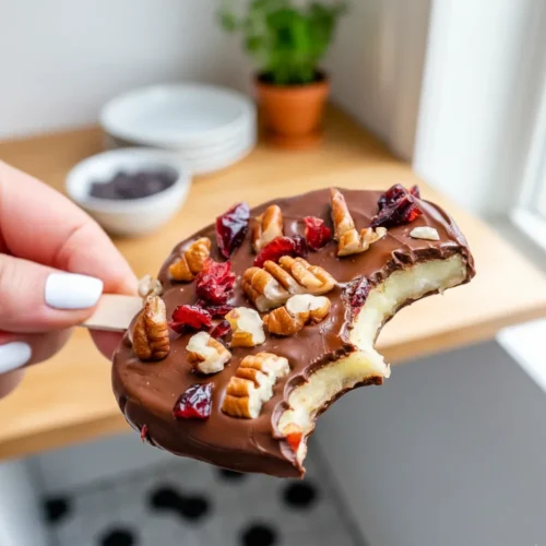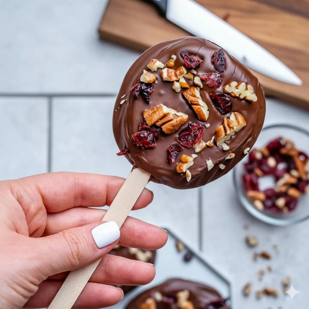 These pops are a mix of textures and flavors that appeal to kids and adults alike. The snap of chilled dark chocolate over a crisp apple slice is satisfying, while the sprinkle of pecans and cranberries adds crunch and a hint of chew. The best part? They look festive without any artificial coloring or decorations.