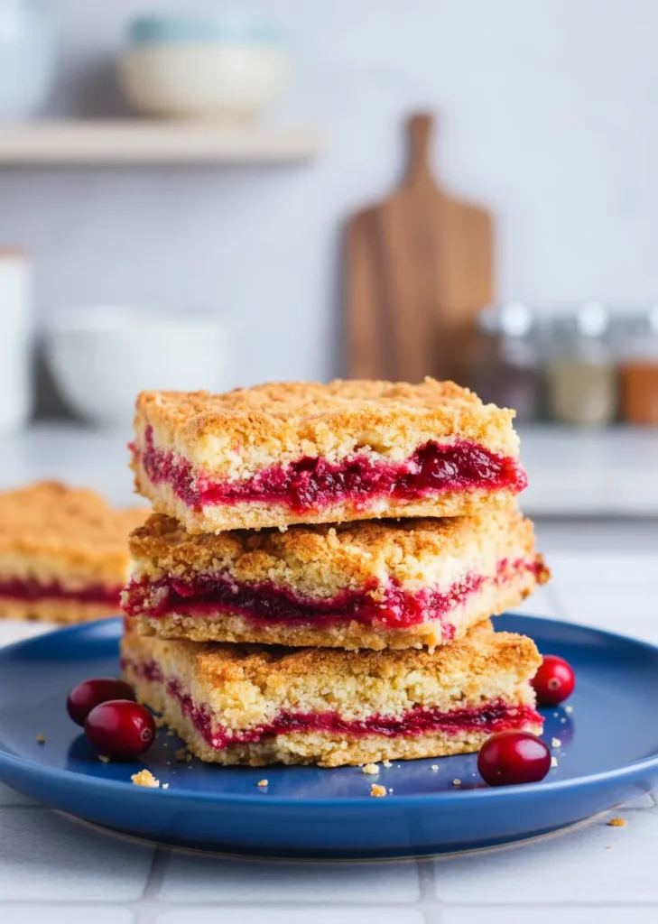 During baking, the bottom becomes golden and just crisp enough to slice cleanly. The top turns slightly toasty, buttery, and crumbly without falling apart. When cooled and cut into bars, they’re rich but not too heavy, sweet but balanced with that pop of cranberry sharpness.