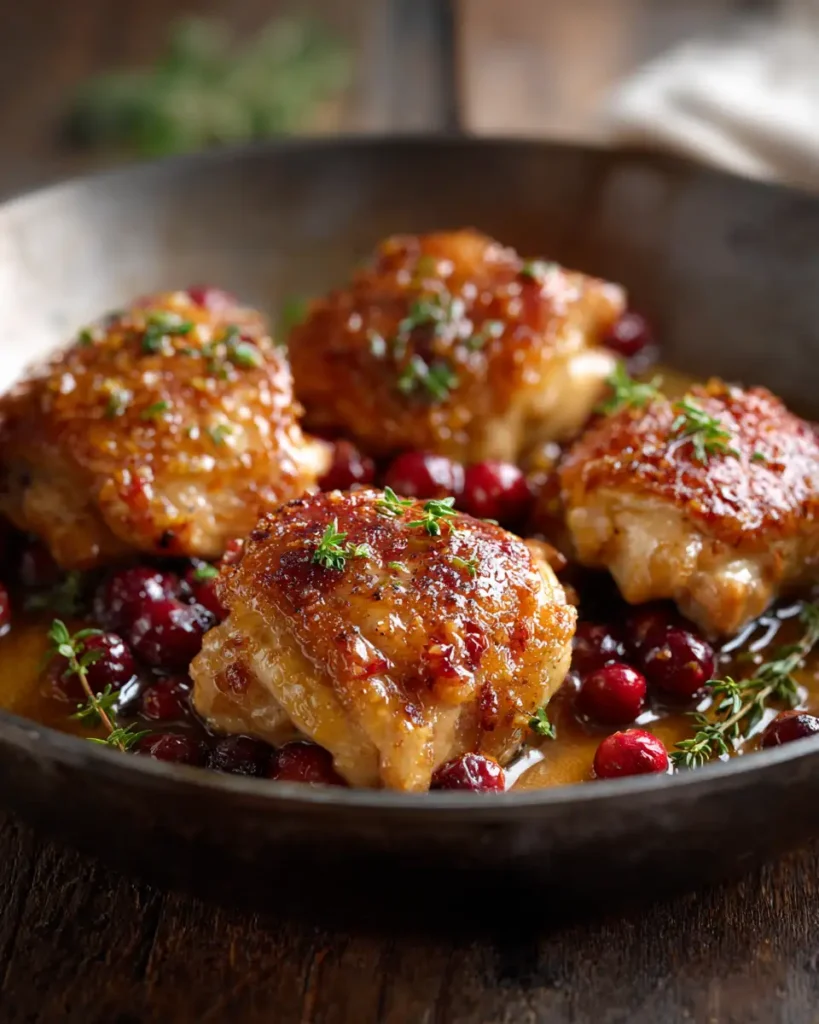 The key to making them shine? Start with a good seasoning blend. A simple mix of kosher salt, paprika, and pepper gives the chicken a warm base flavor that balances the tartness of the cranberries. Pat the thighs dry before seasoning so they sear properly and get that golden-brown crust in the skillet.