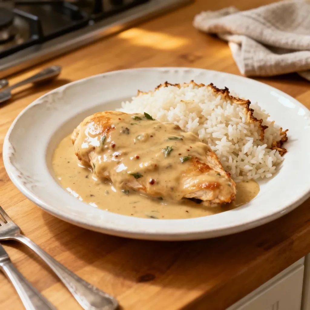 Of course, creamy chicken over rice is the classic—and for good reason. But if you’re switching things up, try spooning the chicken and sauce over mashed potatoes, egg noodles, or even cauliflower rice for a lighter version. The sauce clings to anything soft and starchy.