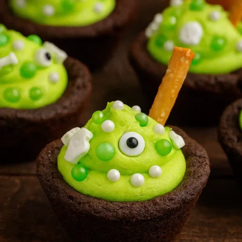 These Cauldron Cookies are a fun and easy Halloween treat, made with chocolate cake mix cookie cups filled with green buttercream to resemble bubbling potions. They’re perfect for parties, and decorating them is a great activity for kids.