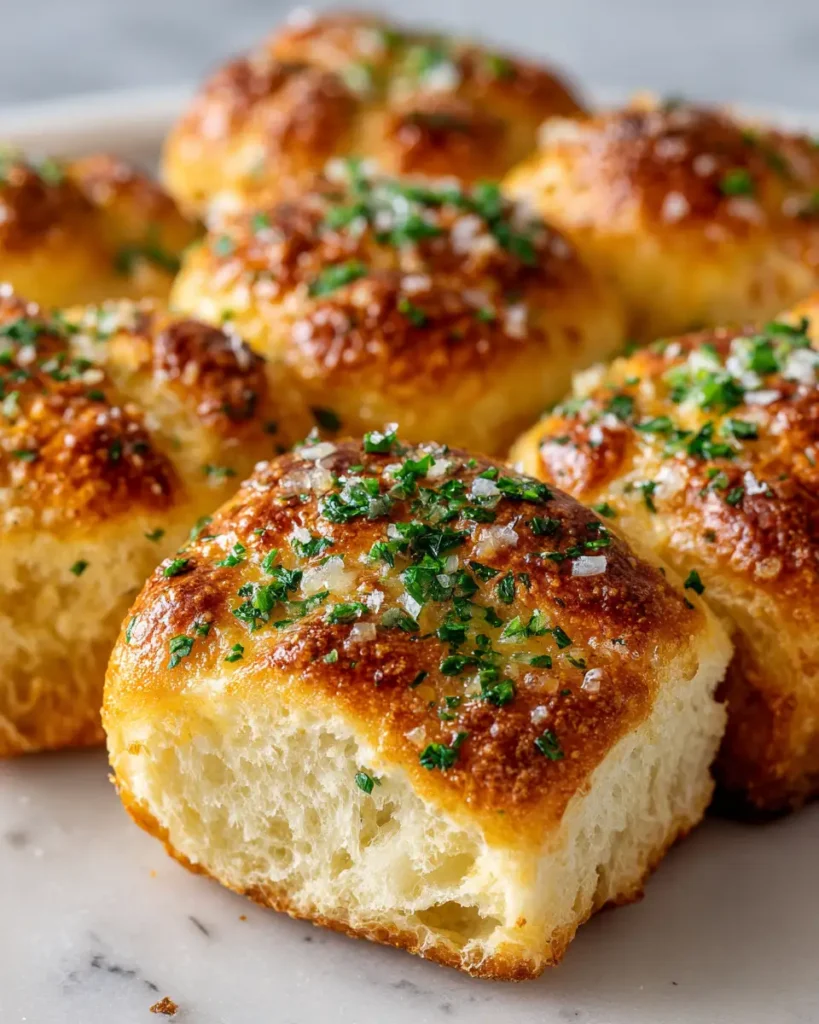 Now comes the best part—the final brush. While the rolls bake, melt more butter and garlic in a pot. Once fragrant, remove from heat and stir in fresh parsley. As soon as the rolls come out of the oven, brush them generously with this garlic butter. Don’t hold back—let it soak into the tops, down the sides, and even into the cracks.