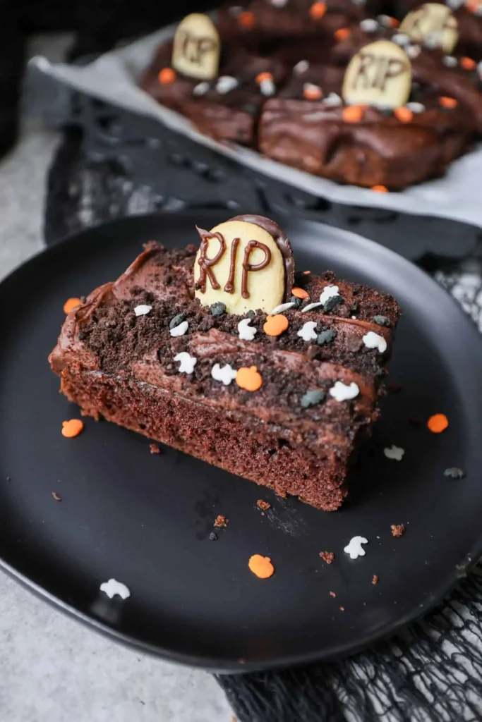 With crushed Oreos for dirt, Milano cookies turned into edible tombstones, and festive Halloween sprinkles, this cake transforms into a mini graveyard—all in one pan. It’s easy to make, looks incredible, and tastes like the best chocolate cake you’ve ever had. Whether you’re serving kids in costumes or grown-up ghouls at a dinner party, this cake is sure to steal the spotlight.