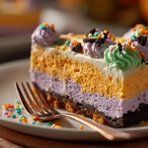 You don’t need any fancy skills or equipment—just a few bowls, a mixer, and a little time to chill. And once it’s set? That first forkful is cold, creamy, colorful Halloween joy.