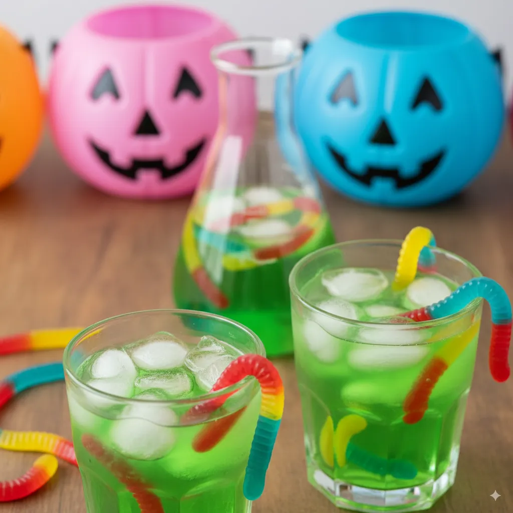 • Zombie Slime Punch: Use blue Gatorade with green gummy worms for a “toxic” look.