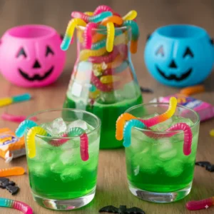 The combination of the green color from Gatorade, the fizzy sparkle from Sprite, and the worms gives this Halloween punch recipe its playful personality. There’s no need for food coloring or special effects—just everyday ingredients coming together for one spook-tacular result. Want it to feel a bit more magical? Serve it in clear cups or a see-through pitcher so everyone can watch the worms “swim.”