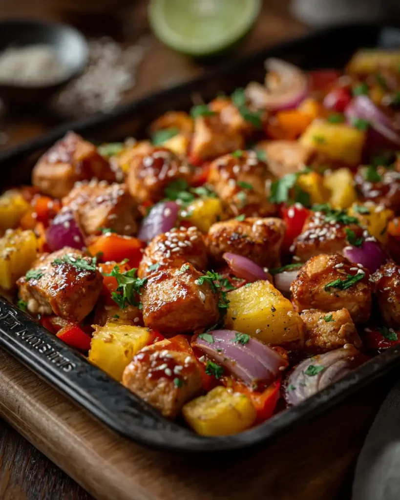 The beauty of this Hawaiian chicken sheet pan meal is how easily it fits into clean-eating plans without sacrificing bold, tropical flavor. The base is simple: lean protein, colorful veggies, and a tangy-sweet sauce that ties everything together.