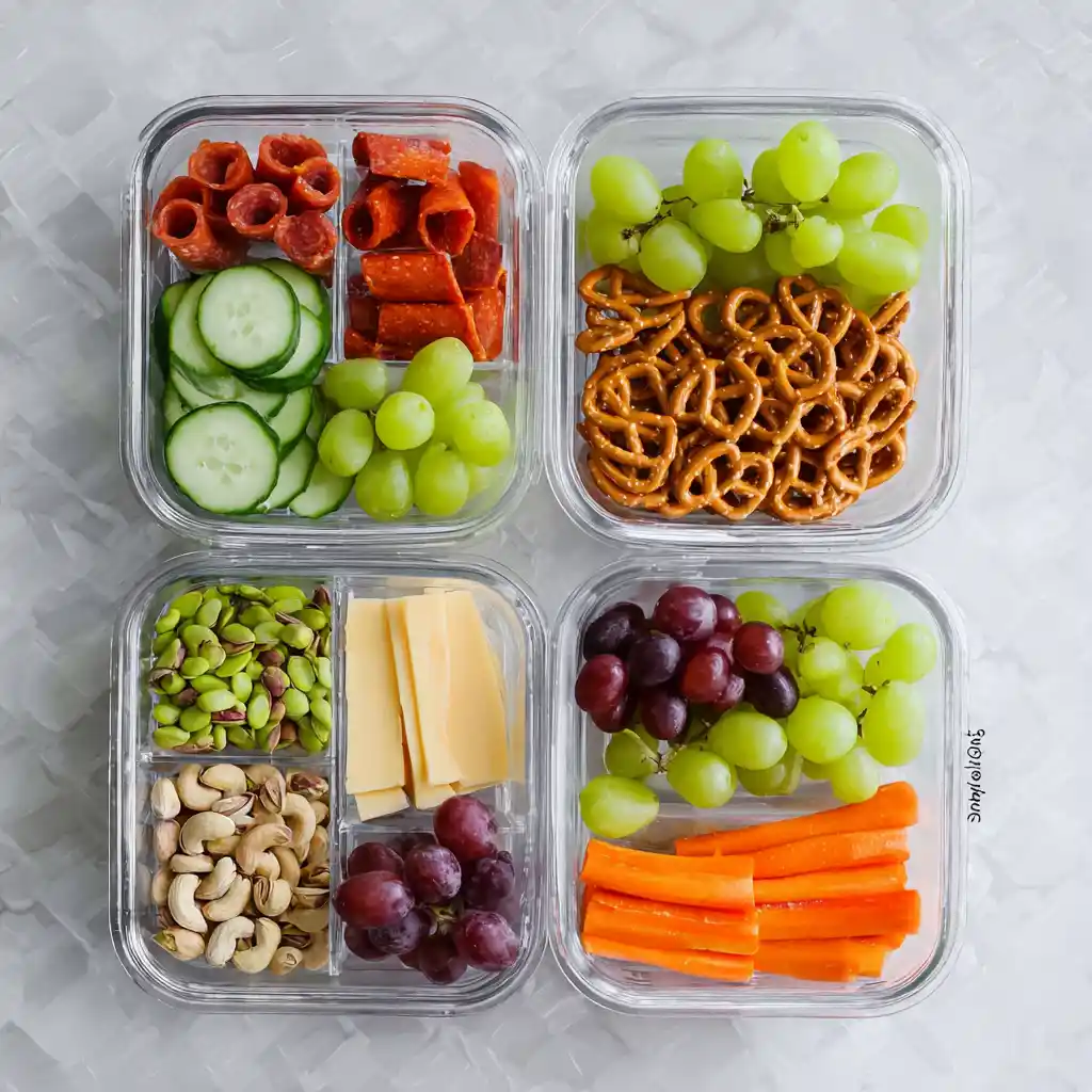 Let’s say you pair carrots and cucumber with a cheese wedge and pepperoni stick. You’ve got color, crunch, and protein in one small box. Or mix grapes with diced cheddar and pretzels for something sweet, salty, and snacky. The possibilities are endless, but it helps to follow this structure so your snacks don’t feel repetitive. Up next, we’ll break down how to prep four simple combos you can rotate all week long.
