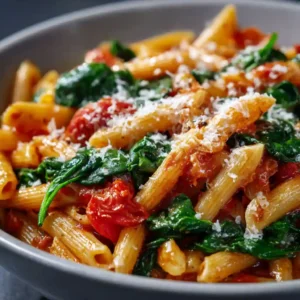 One-Pot Spinach Tomato Pasta is one of those rare dinners that checks every box: creamy, flavorful, fast, and cooked all in a single pot. It’s the kind of recipe that turns simple pantry ingredients into something deeply satisfying. Whether you’re short on time, short on dishes, or just craving something comforting with a little kick, this dish delivers. Serve it as-is, or make it your own with add-ins like grilled chicken or roasted veggies. However you enjoy it, one thing’s certain—it’ll be on repeat in your kitchen.