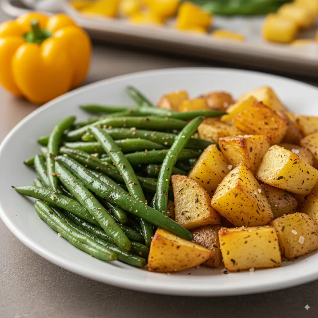 Yes. These potatoes and green beans are roasted, not fried, and use simple, clean ingredients like olive oil, garlic, and herbs. They’re naturally gluten-free, dairy-free, and full of fiber, potassium, and vitamins A and C. You get flavor without added heaviness.