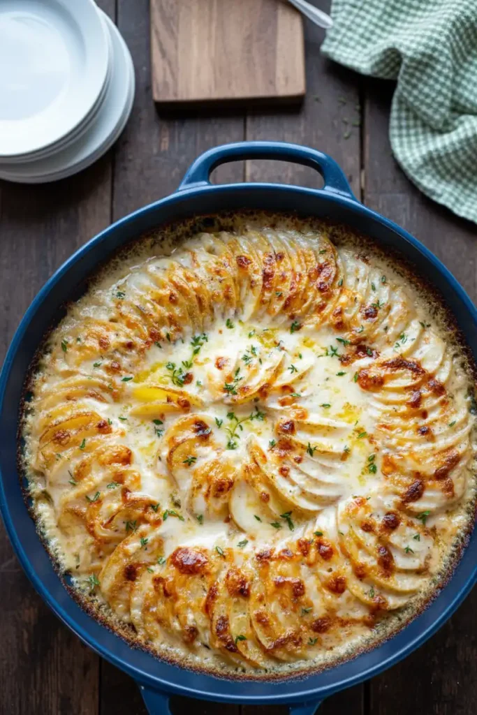Presentation may not be the first thing you think of with potatoes gratin, but this dish can look as good as it tastes. When I’m cooking for a crowd or a special dinner, I arrange the potato slices vertically in a circular pattern. It creates golden, crispy edges and a beautiful spiral effect once baked. For a more rustic look, I layer them flat and top the dish with extra cheese for that browned, bubbling crust everyone loves.