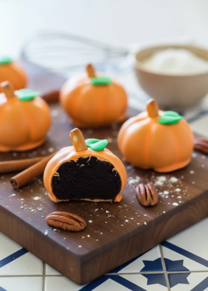 Start with just three core ingredients: 36 Oreo cookies, 8 ounces of softened cream cheese, and 12 ounces of orange candy melts. That’s it. You’ll also need a food processor or zip-top bag and rolling pin to crush the cookies. A baking sheet lined with parchment paper will help keep cleanup easy. For decoration, mini pretzel sticks and leaf-shaped candy add the finishing touch.