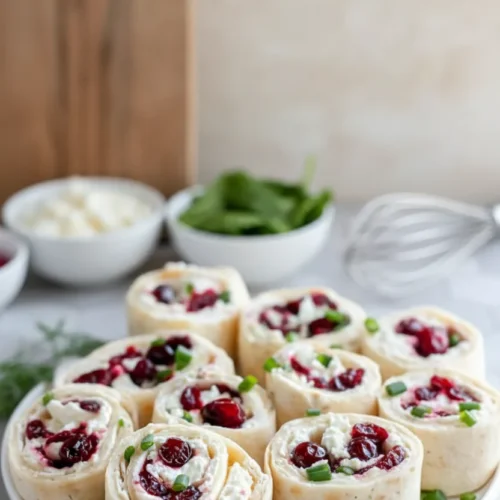 The reason these roll ups stand out isn’t just their look it’s the flavor. The combination of smooth cream cheese and crumbly feta creates a rich, savory base with just enough saltiness to balance the sweet bursts of dried cranberry. Chopped chives add a light onion note that cuts through the richness and brightens every bite.
