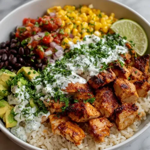 Whether you’re feeding kids, prepping lunches, or just craving a cozy, layered bowl of goodness, this slow cooker chicken burrito bowl is your go-to. The rice soaks up the saucy chicken, the corn adds sweetness, and the creamy avocado finishes everything off with just the right richness. Give it a drizzle of cilantro lime dressing and you’re golden. Trust me—it’s a keeper.