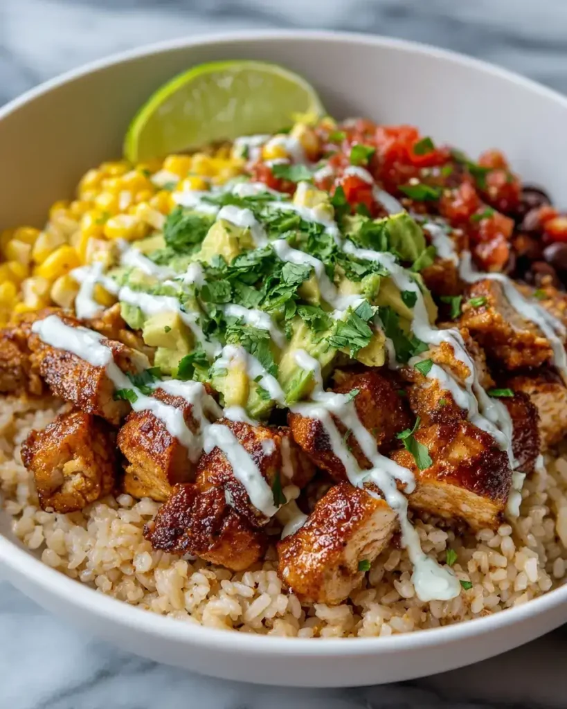 But don’t stop at bowls. This recipe is perfect for meal prep. Just portion everything into containers and you’ve got lunch for days. It reheats beautifully and actually tastes even better after the flavors have time to mingle. You can also scoop the filling into warm tortillas for chicken burrito wraps, stuff it in lettuce cups for a lighter twist, or even use it to top nachos or baked potatoes.