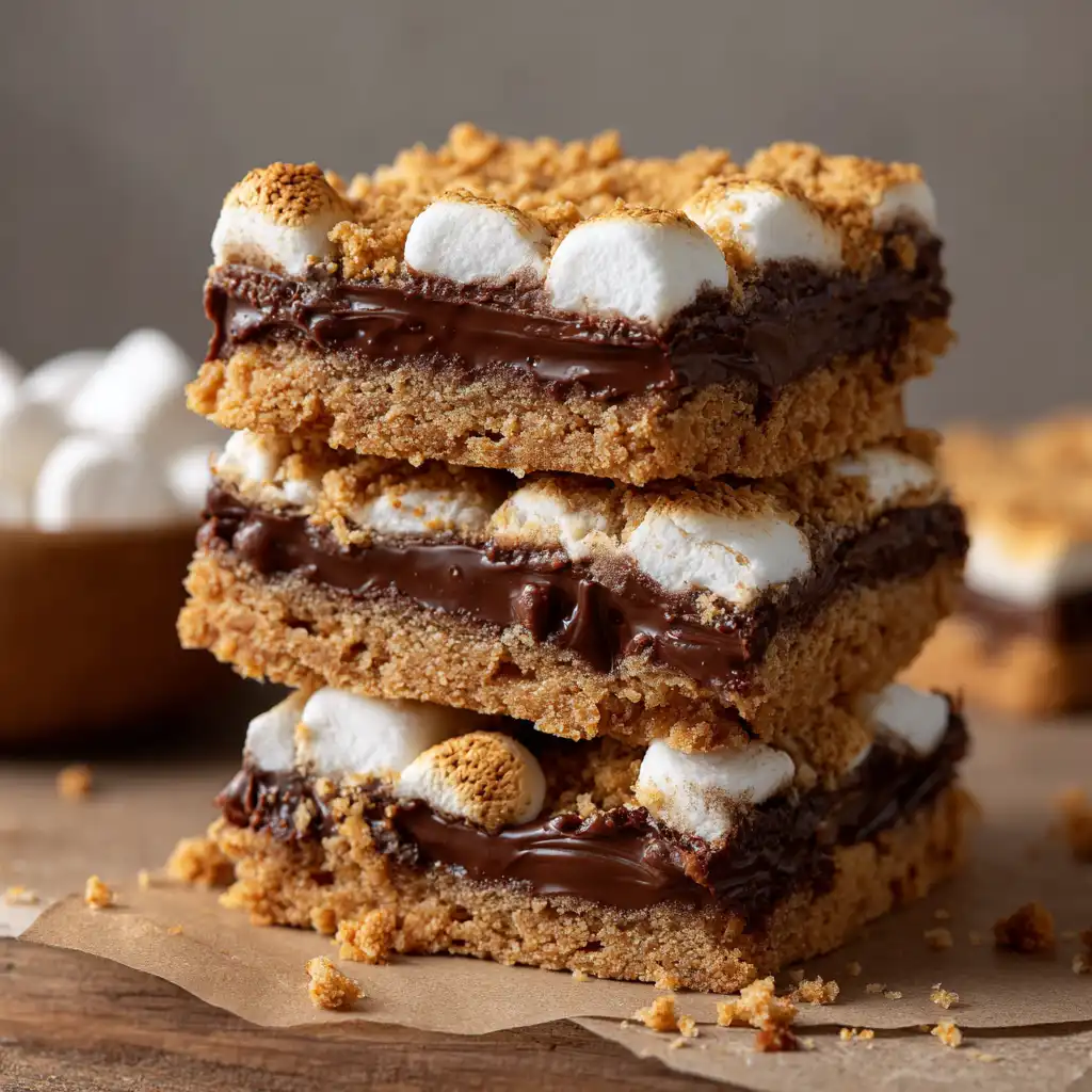 S’more bars are layered desserts made with a graham cracker crust, chocolate chips or melted chocolate, and a marshmallow topping. They’re baked until golden and gooey.