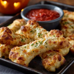 Whether you’re making these for a Halloween gathering or just a fun family night, the best part is how simple they are. No advanced baking skills required—just some creative shaping and a love for cheese. This spooky snack is equal parts fun, flavorful, and festive. And let’s be honest—anything dipped in marinara “blood” is a guaranteed crowd-pleaser.
