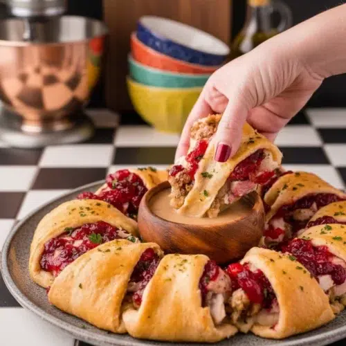 The Thanksgiving Crescent Ring is exactly that. It takes everything people love about the meal—turkey, mashed potatoes, stuffing, and cranberry sauce—and wraps it all up in a buttery crescent roll. As it bakes, the dough turns crisp and golden while the inside stays warm and flavorful. It’s not just a clever way to use leftovers. It’s a celebration of comfort food that tastes like the season itself.