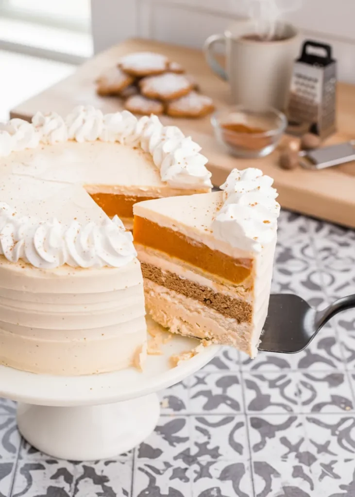 Instead of serving three separate desserts, the Piecaken combines them all into one brilliant, crowd-stopping creation. There’s something special about slicing into it and discovering layer after layer of comfort and flavor cheesecake, spice cake, and pumpkin pie each with its own charm.