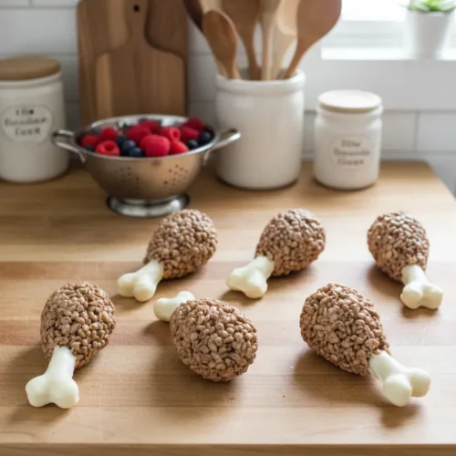 I wanted something kids could recognize, enjoy, and get a kick out of. These aren’t just desserts—they’re edible toys, in the best way. Shaped like turkey legs but made from Cocoa Krispies and pretzels, they’re festive, fun, and seriously tasty. Each bite is chewy, chocolatey, and crispy. Even picky eaters get excited.