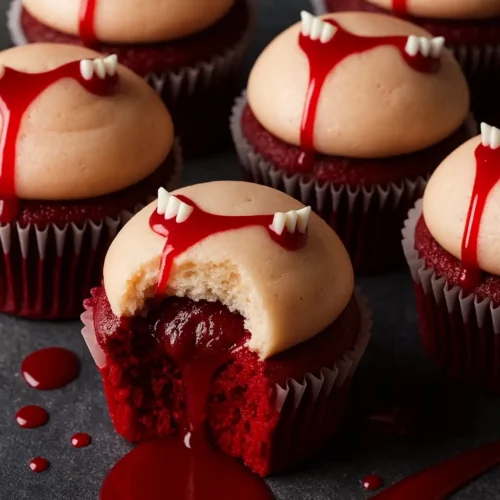 Once served, these Vampire Bite Halloween Cupcakes become more than dessert—they’re a conversation starter, centerpiece, and crowd-pleaser all in one.