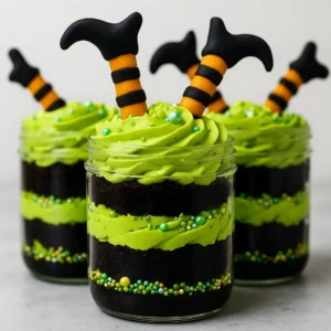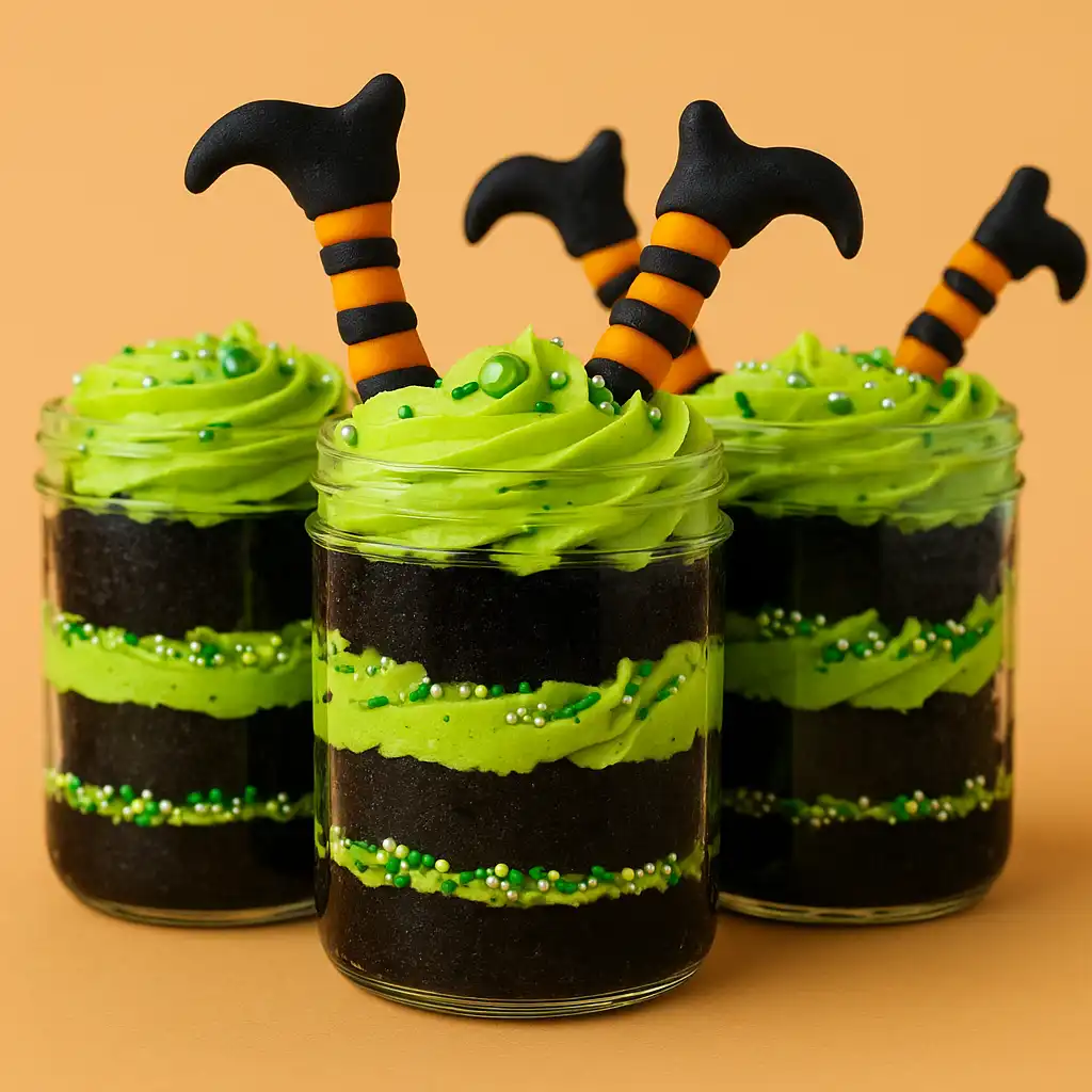 There’s something extra exciting about Halloween baking—it’s one of the few times of year when desserts can be both whimsical and dramatic. Witches’ brew Halloween cake jars capture that spirit perfectly. The idea is simple: layers of soft chocolate cake paired with swirls of green buttercream, sprinkled with bright pops of color, and finished with playful fondant witch legs sticking out the top. The result looks like a witch has tumbled straight into her bubbling brew, and the jars themselves feel like little cauldrons filled with sweetness.